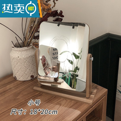 敬平ins风化妆镜木质镜子台式网红女大号桌面折叠梳妆镜学生宿舍便携便携式用镜 小号-旋转款