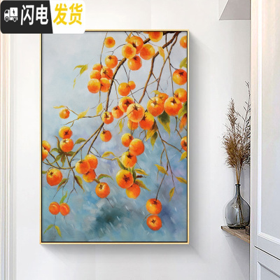 三维工匠柿子事事如意十字绣小件2019新款线绣客厅竖版玄关小幅简单卧室画 中格三股绣50*69CM棉线印花