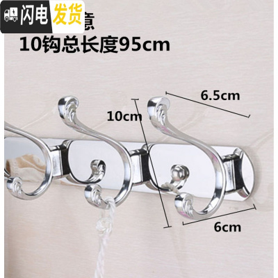 三维工匠不锈钢衣服挂钩衣挂排钩试衣间墙壁壁挂衣架浴室墙上衣帽钩挂衣钩 亮光如意10钩-95cm