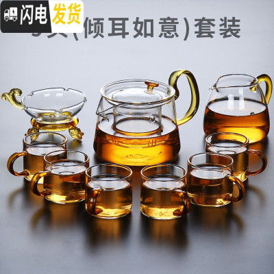 三维工匠玻璃茶具功夫茶杯套装家用简约透明办公室会客泡茶壶客厅小套泡茶 9头倾耳如意套装