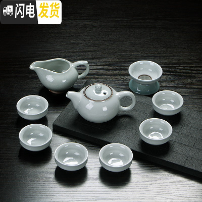 三维工匠哥窑陶瓷茶具套装 家用简约 日式功夫茶具整套茶杯茶壶盖碗泡茶器 10头哥窑如意盖碗套装翡翠绿