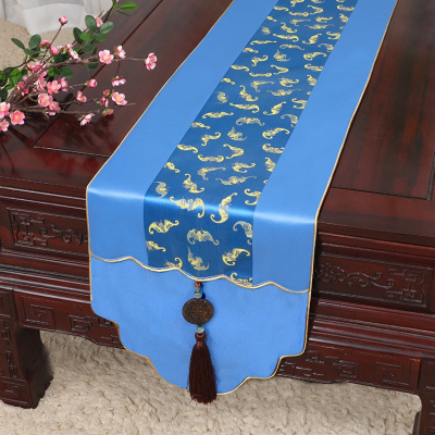 新中式古典玉桌旗茶几长条布艺中国风桌布床柜旗电视柜盖布 如意百福 34*250适合桌长190-200CM