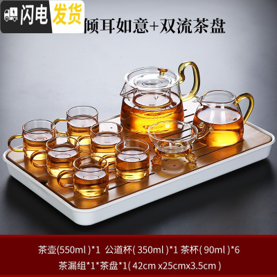 三维工匠透明玻璃茶具套装家用功夫茶杯客厅日式简约办公室会客茶壶小茶盘 9头倾耳如意+双流茶盘 9件