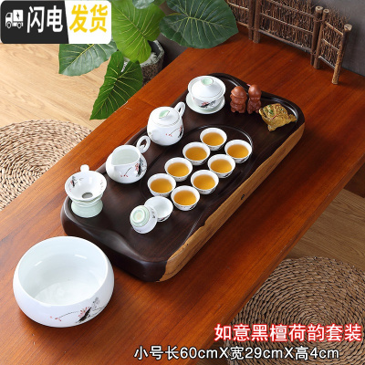 三维工匠茶盘实木黑檀整块长方形原木简约家用客厅排水大号功夫茶具泡茶台 如意60+荷韵茶具60*30*5