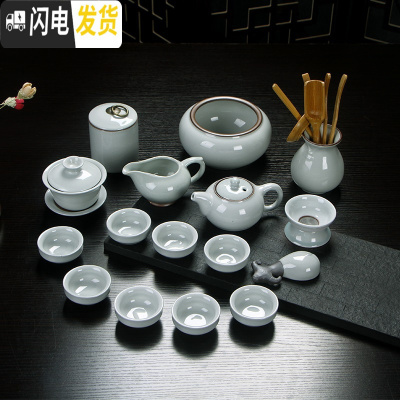 三维工匠哥窑陶瓷茶具套装 家用简约 日式功夫茶具整套茶杯茶壶盖碗泡茶器 17头哥窑如意茶具套装象牙白