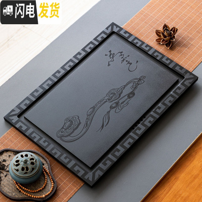 三维工匠乌金石茶盘定制嵌入式茶台石板茶桌中间空位内嵌式漏水面板盖石材 玉如意53*37*1.8茶具