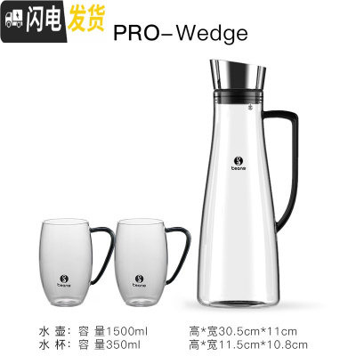三维工匠冷水壶玻璃可高温家用玻璃水壶大容量扎壶玻璃防爆凉水壶套组 Pro-Wedge冷水壶+OVA-CUP杯*2