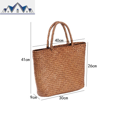 Kens编度假手提包 百搭手工编织收纳袋 夏季休闲复古手袋购物篮 三维工匠收纳包