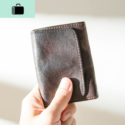 复古疯马皮手工皮卡包男女迷你小零钱包头层牛皮超薄驾驶证卡套NEW LAKE 深棕色头层牛皮