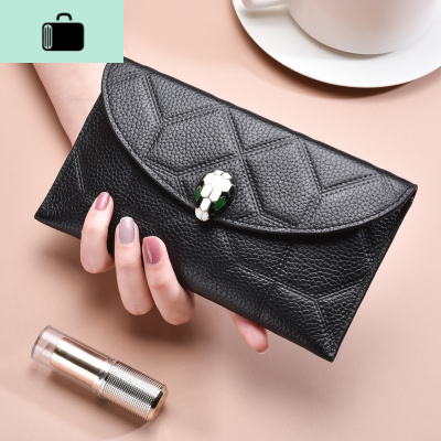 2020新款皮搭扣女士长款钱包牛皮大容量多功能手机钱包女手拿包NEW LAKE