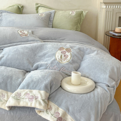 高端A类牛奶绒刺绣床单四件套加厚珊瑚法兰绒被套超柔软床上用品4