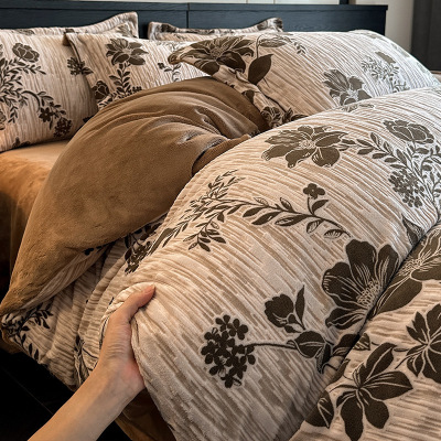 轻奢牛奶绒四件套冬季加厚双面珊瑚绒床单法兰绒花被套床上用品