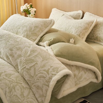 冬季加厚羊羔绒四件套牛奶绒床单被罩南通法兰绒床上用品加绒被套