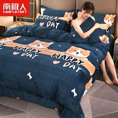 冬季花牛奶绒四件套加厚珊瑚绒被套南通加绒床上用品法兰绒床单