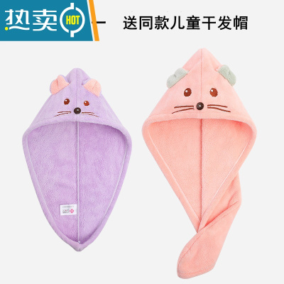 敬平亲子干发帽可爱加厚2022新款吸水速干成人儿童包头发毛巾洗头浴帽 1成人浅粉+1儿童浅紫