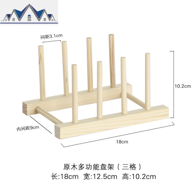 日式多格实木托架盘子架木质水杯碟沥水架盘子支架餐具分类置物 三维工匠收纳层架