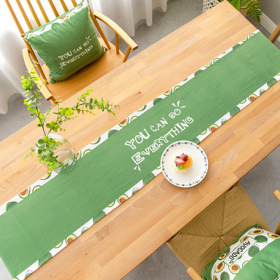 北欧ins牛油果桌旗绿色餐桌布艺装饰布现代简约茶几桌布中间长条