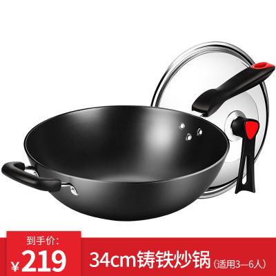 [新品]炊大皇 炒锅 32cm铸铁锅 无涂层 可立盖铁锅 生铁锅具电磁炉燃气煤气灶明火通用炒菜锅 34cm铸铁锅