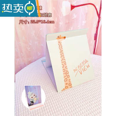 敬平镜子化妆镜折叠台式pu皮便携随身高清学生宿舍女大小号桌面梳妆镜便携式用镜 纸质大号全面镜-长颈鹿