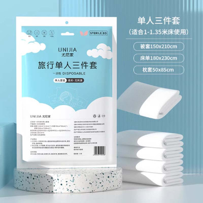 尤尼家一次性旅行套装床单被罩枕套三件套