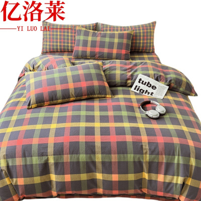 四件套宿舍床单三件套格子ins风被套学生宿舍三件套被罩