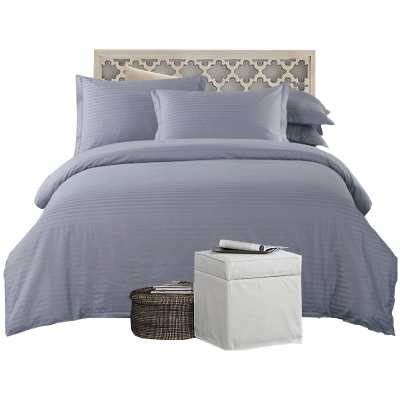 美帮汇四件套酒店用床上全棉被套缎纹床单宾馆民宿被罩单人三件套灰