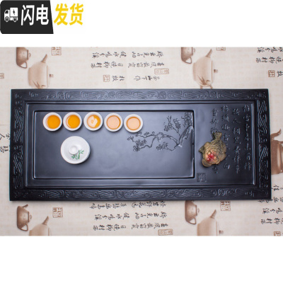 三维工匠变色石茶盘功夫茶具整块乌金石茶台家用简约石茶托中式茶海 梅花纯黑80*35*3CM送桶