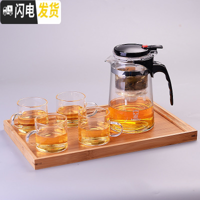 三维工匠飘逸杯耐热全拆洗功夫泡茶壶家用过滤内胆玻璃茶壶套装茶具 (750)1壶+4个150可高温杯+1茶盘
