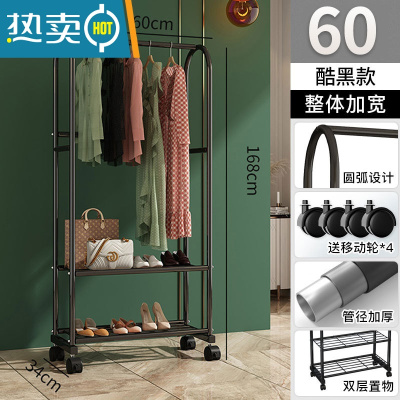 敬平晾衣架落地阳台晒衣服架子室内晾衣杆挂衣服架子可移动家用衣帽架 [60cm]酷黑-双层款+挂裤杆 大