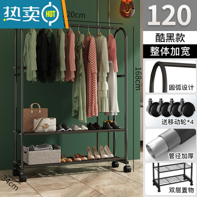 敬平晾衣架落地阳台晒衣服架子室内晾衣杆挂衣服架子可移动家用衣帽架 [120cm]酷黑-双层款+挂裤杆 大