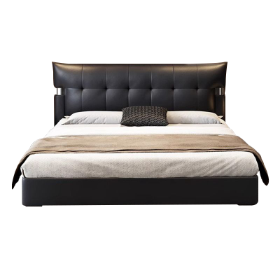 意式真皮床轻奢主卧室现代简约双人床家用大床网红小户型储物婚床