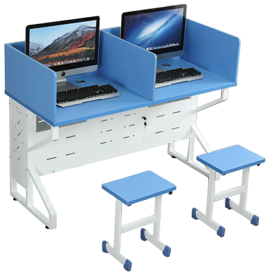 鑫虎威 办公家具三人位翻转电脑桌隐藏显示器式电脑桌部队学校电教室机房培训桌