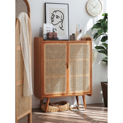 森美人北欧实木鞋柜简约现代厅玄关柜创意多功能餐边柜藤编储物收纳柜