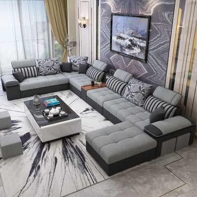 现代简约布艺沙发大户型北欧客厅组合可拆洗乳胶转角U型贵妃整装