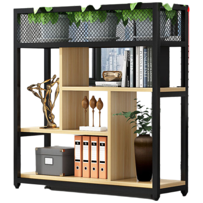 晋舰铁艺置物架绿植花架隔断收纳架办公室装饰架长100cm黑架+浅胡桃