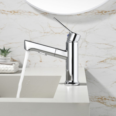 欧琳水龙头抽拉面盆水龙头卫浴冷热水龙头洗脸盆龙头OLMPUC101抽拉台盆龙头 圆形抽拉龙头 两出水模式