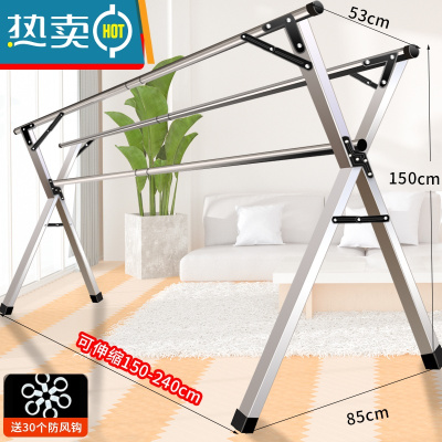 敬平晾衣架落地折叠室内304不锈钢加高家用晾衣杆户外楼顶晒被晒衣架 加高加强版]全折叠2.5米伸缩( 免安装承