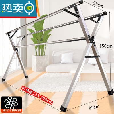 敬平晾衣架落地折叠卧室内伸缩晾衣杆晒被子器阳台简易凉挂衣双杆式 推荐加高加厚 不锈钢三杆2.0米(加高晾晒更实用) 大