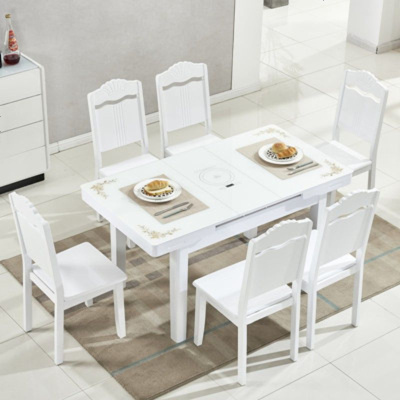 伸缩餐桌椅组合现代简约可折叠4人6长方形家用小户型餐桌带电磁炉