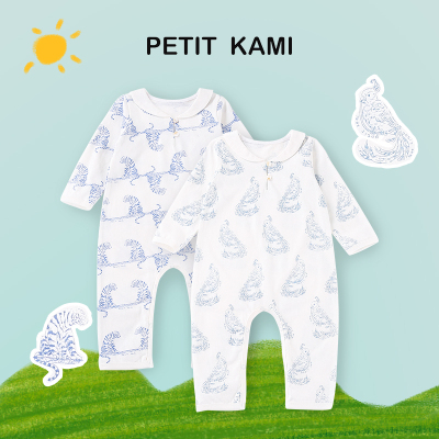 Petitkami2021秋冬婴童马戏团老虎鹦鹉海军领长袖爬服连体衣