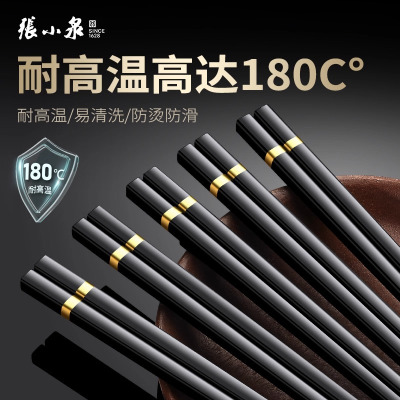 张小泉合金筷子家用高档防滑筷子5双装商用油炸耐高温食品级8138