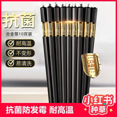 双枪合金筷子家用高档新款抗菌防霉精品家庭耐高温金-欣欣向荣10双(24cm家用款)