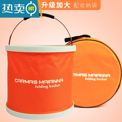 敬平折叠水桶伸缩折叠桶钓鱼桶车用洗车桶加厚大号 刷汽车用品便携式 橙色[升级加大]专配拉链收纳袋