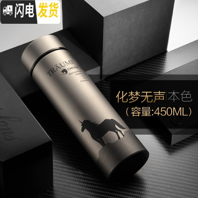 三维工匠瑞士男士保温杯316不锈钢商务女大容量水杯便携车载泡茶杯子 本色