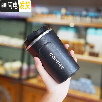 三维工匠保温杯女士随手咖啡不锈钢车载水杯便携男学生简约ins原宿风杯子 翻盖隐藏吸管/500/蓝色