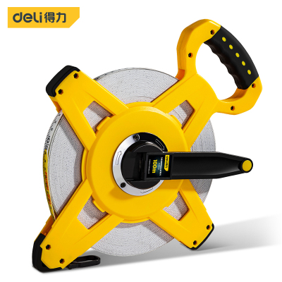 得力 DL98100B三倍速架式皮卷尺手提插尺钢卷尺工程测量尺子100mx14.5mm