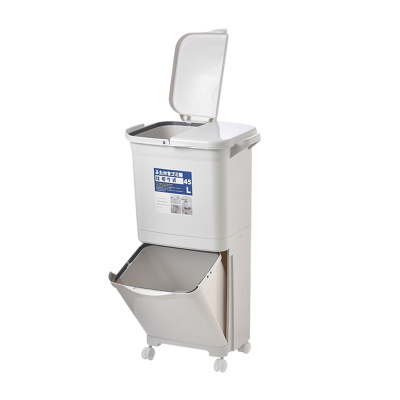 [脚踩+按压式垃圾桶]清科蓝 日式分类垃圾桶 干湿分离带盖垃圾桶双层脚踏家用厨房按压式垃圾桶带滑轮