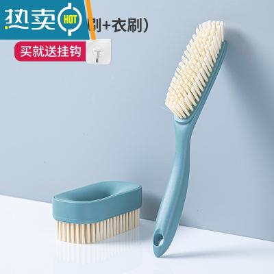 敬平鞋刷长柄不伤鞋专用鞋刷子家用硬毛刷鞋擦器清洁板刷洗衣刷套装 软硬适中[鞋刷+洗衣刷]靛蓝色(挂钩)