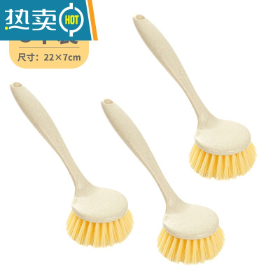 敬平长柄厨房用刷锅器洗碗刷子厨房水槽灶台去污不易沾油清洁锅刷子 小麦秸秆锅刷米黄色-3个装