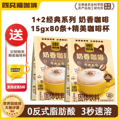 四只猫1+2经典意式咖啡 三合一 速溶咖啡1+2意式+奶香咖啡80条送小奶杯